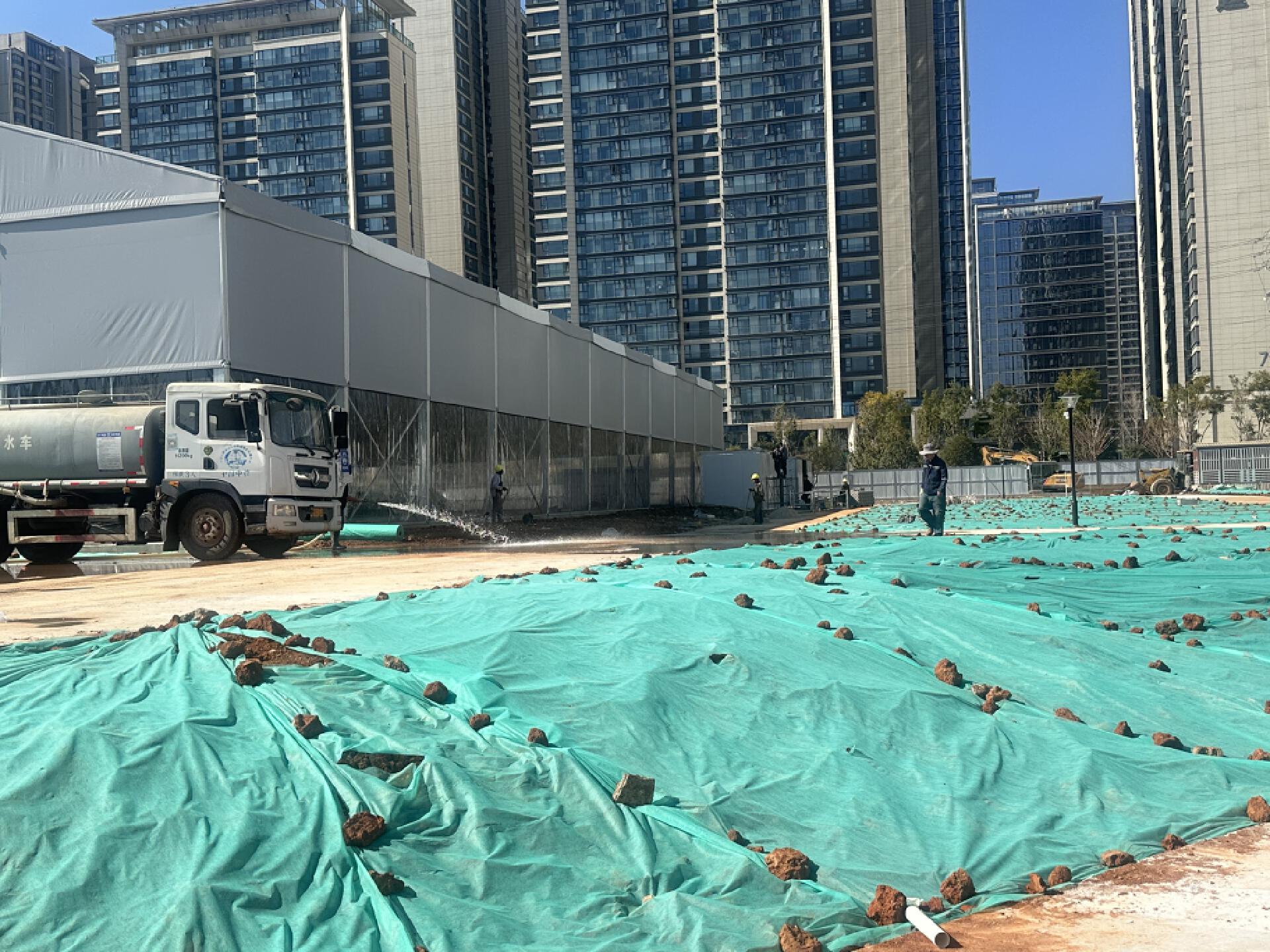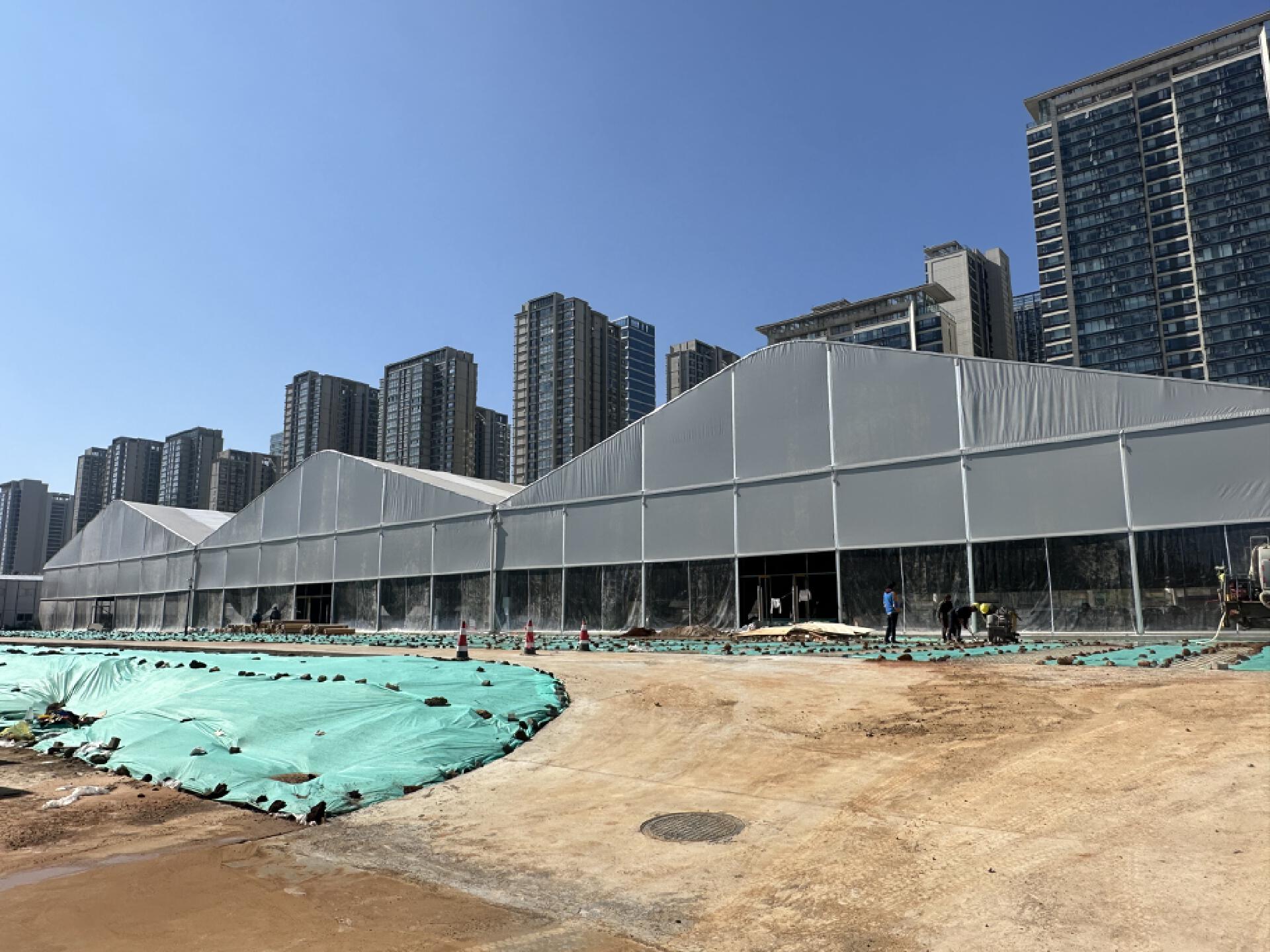 记者发现,与之前发布的效果图比较,“体育中心”的名称改为了“巫家坝运动中心”,现场有十余名工人在如火如荼地施工,目前体育馆上盖场篷房基本已经建设完成,部分工人正准备做园区内绿化。