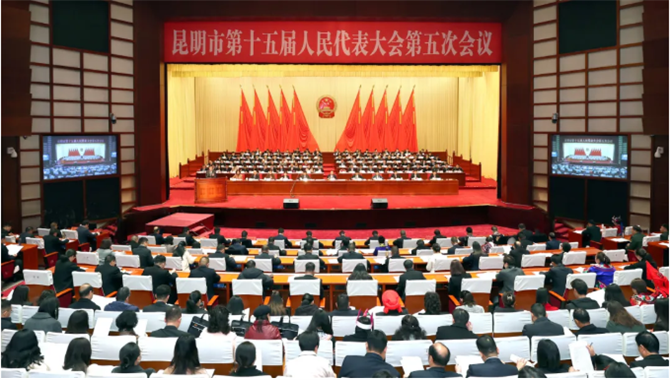 1月12日上午,昆明市第十五届人民代表大会第五次会议在昆明会堂隆重开幕。