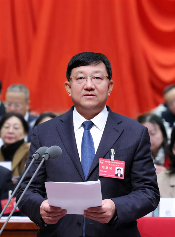 市长刘佳晨代表市人民政府向大会作政府工作报告。
