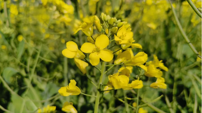 踏入这片金黄世界,满目灿烂,恰如杨万里笔下“儿童急走追黄碟,飞入菜花无处寻”描绘的灵动场景,金黄璀璨的油菜花绵延天际,随风摇曳起层层花浪,馥郁花香弥漫空中,花丛中,忙碌的蜜蜂与翩翩彩蝶交织穿梭,奏响优美乐章。