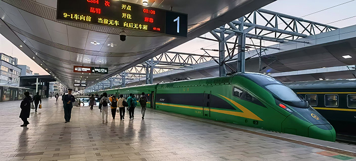 为确保春运期间运能与需求的精准匹配,国铁昆明局充分利用铁路12306客票预售及候补数据,深入分析旅客出行规律,科学统筹运力资源,动态调整列车开行方案,并完善了突发客流应急响应机制,梯次安排运力投放。2025年春运期间,国铁昆明局计划日均开行旅客列车471列,较2024年春运增加36列,日均投入运能40.5万席,同比增加1.9万席,增长5.0%,动车组上线数量增加至192组,同比提升11组。