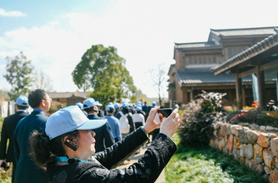 在讲解员的引导下,大家沿着步道穿过净水湿地来到“靠山、滨湖、水绕”的美丽村庄——卧龙古渔村,参观昆明传统的“一颗印”建筑和民俗博物馆,看到绿道沿途的景致和民俗文化完美融合,大家纷纷拿起手机留住眼前的美景。