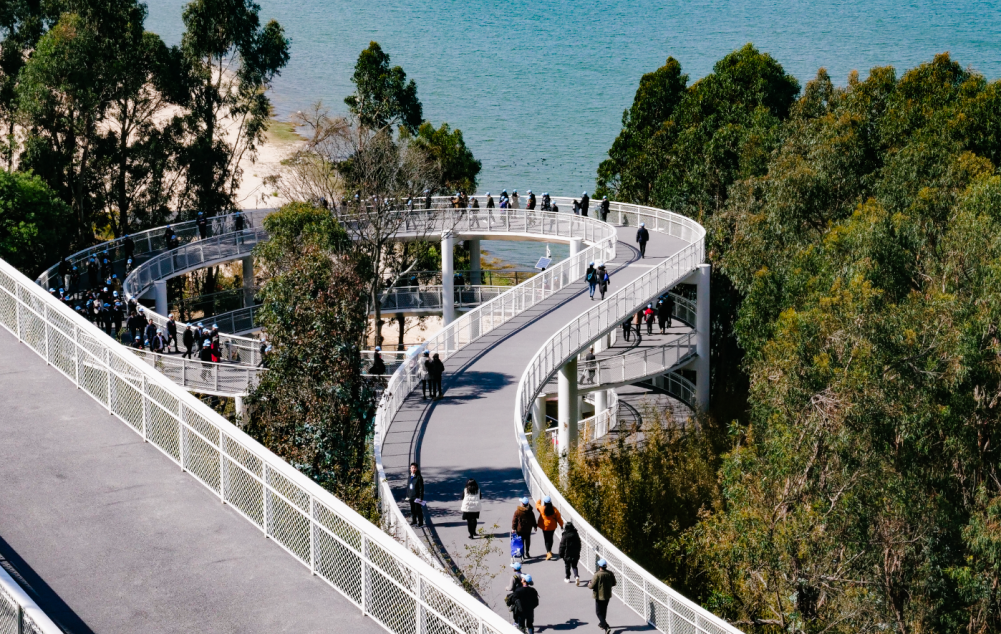 行走在步道上远眺滇池,湖面波光粼粼,与蓝天白云交相辉映,构成一幅动人心魄的自然画卷。代表们沿着精心设计的步道漫步,听取工作人员的详细介绍,不时举起相机,记录下沿途的旖旎风光。大家纷纷表示,滇池绿道应全面发挥其复合功能,成为展现昆明自然生态美景与深厚文化底蕴的“生态廊道”、将自然美景转化为人民群众幸福生活的“乐活之道”、推动城市发展模式和生活理念升级的“动力之道”。