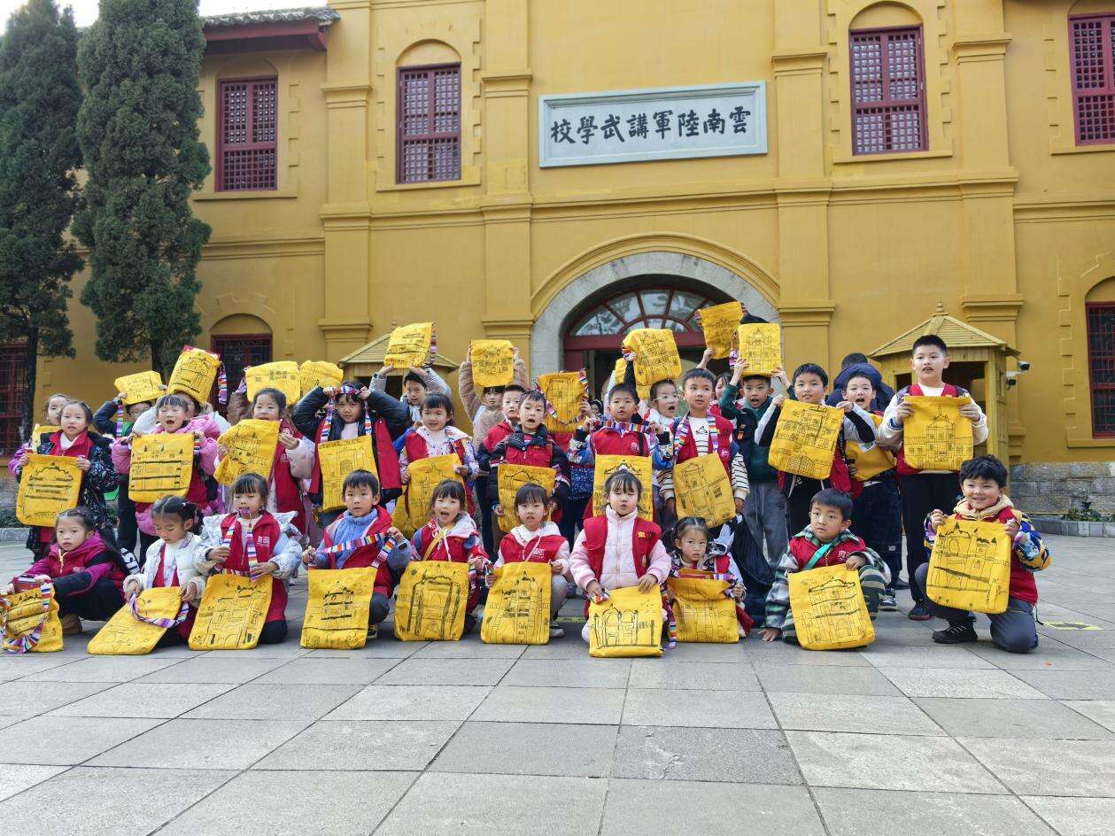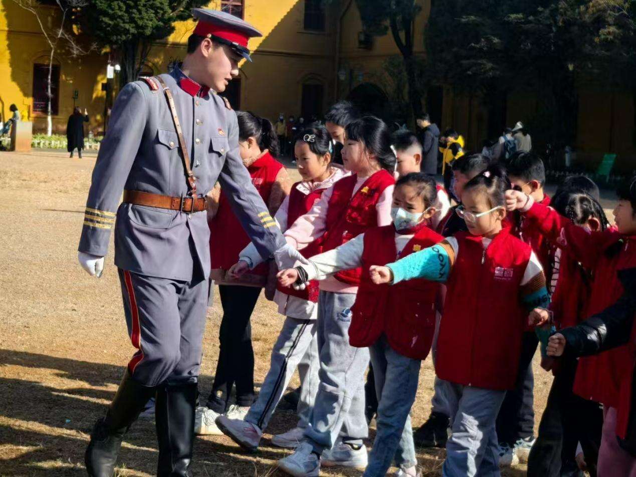 1月14日,“2025款昆明系列文化活动”主要活动之一的“走进讲武堂,倾听历史的回响”主题研学活动在云南陆军讲武堂历史博物馆举行。40名小朋友听讲解,体验“士兵”受训操练,制作讲武堂文创冰箱贴、文创背包,参与了一场艺术与历史交融的研学之旅。(昆明日报 全媒体首席记者李思凡)
