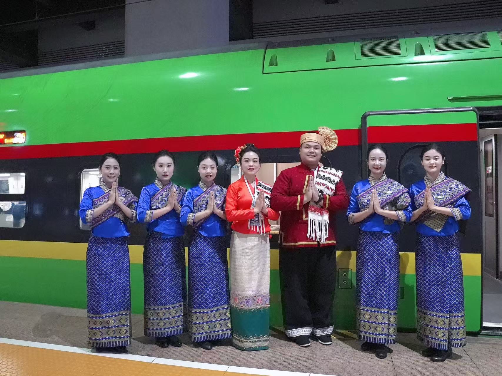 活动中,铁路职工、导游、菜农、工程师等纷纷走上舞台,向旅客们分享了中老铁路通车三年来翻天覆地的巨大变化。