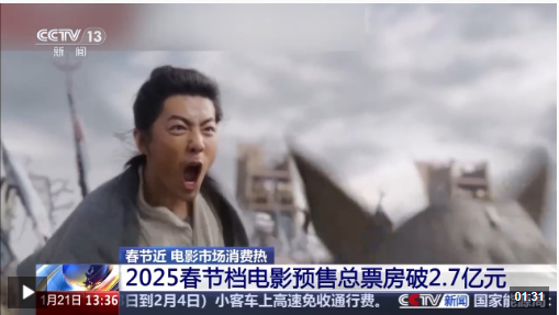 电影数据分析师王舒:我们从购票人群画像中发现,今年预售开启首日,三人及以上结伴观影的观众比例超过四分之一,相较去年同期提升5%,说明今年春节档影片对合家观影更具吸引力。