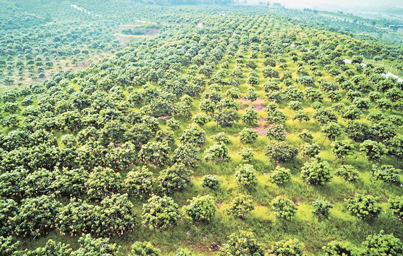 荣将镇龙头村果子山万亩芒果树郁郁葱葱。供图