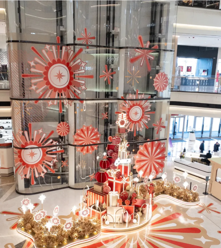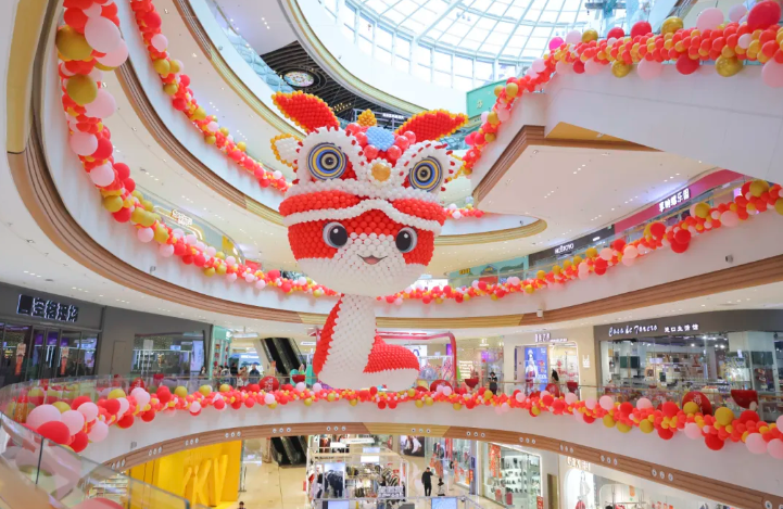 打造“蛇来运转”新年主题展,用气球将醒狮和蛇的元素完美融合。头戴醒狮帽的蛇头威风又可爱,蛇身蜿蜒盘旋红白配色超亮眼。不管你从哪个楼层看,都能被它的壮观震撼到。