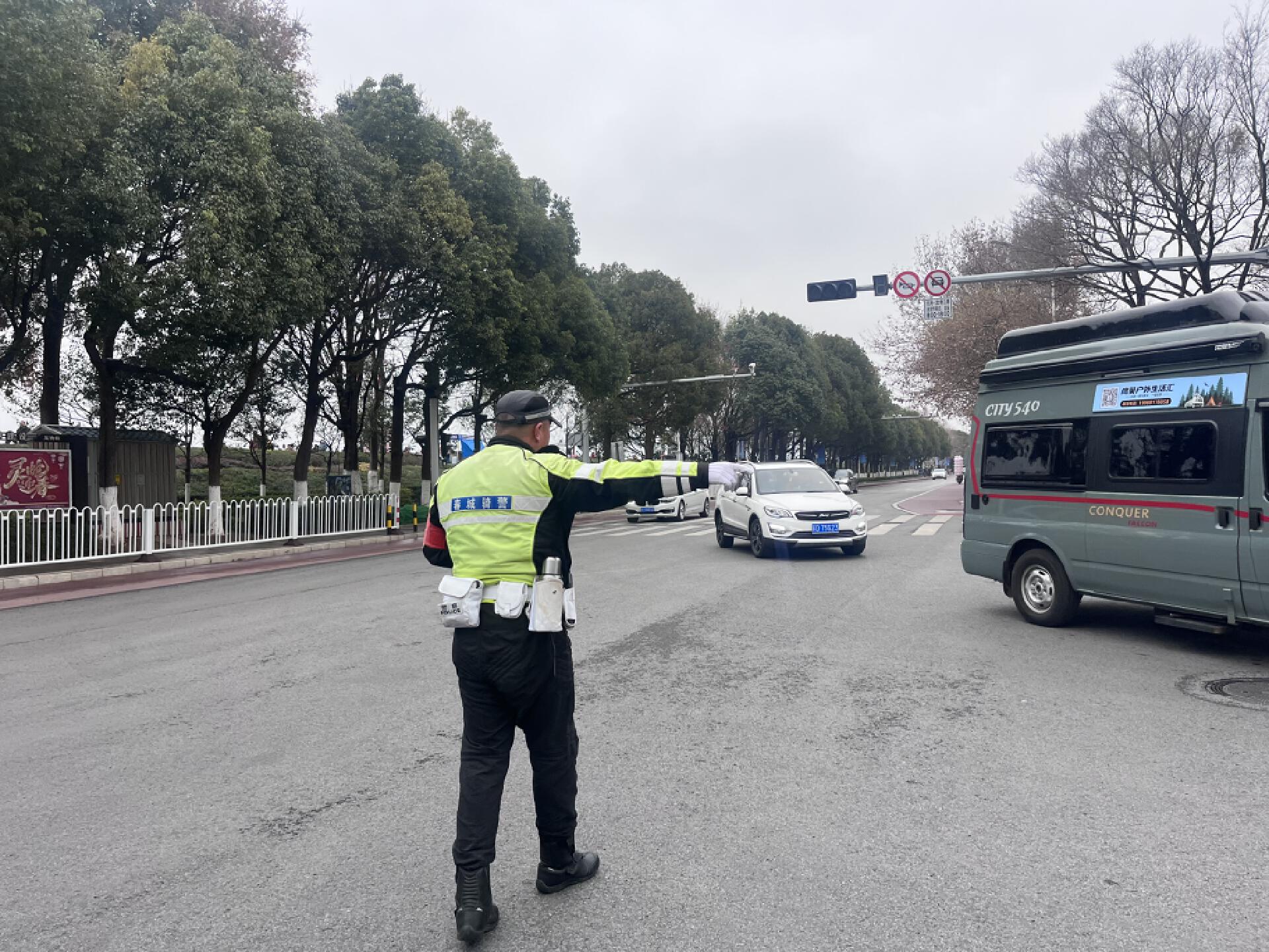 “注意安全,请走斑马线”“去民族村往哪走?”“沿着红塔西路走到头,再右转下去就到了。”上午11点,天空飘起了小雨,此时何文博已经工作三个多小时,尽管脸被冻得通红,还有些微咳,但他依然坚守在岗位上。除了维持现场交通秩序,还耐心地为现场问路的市民解答。