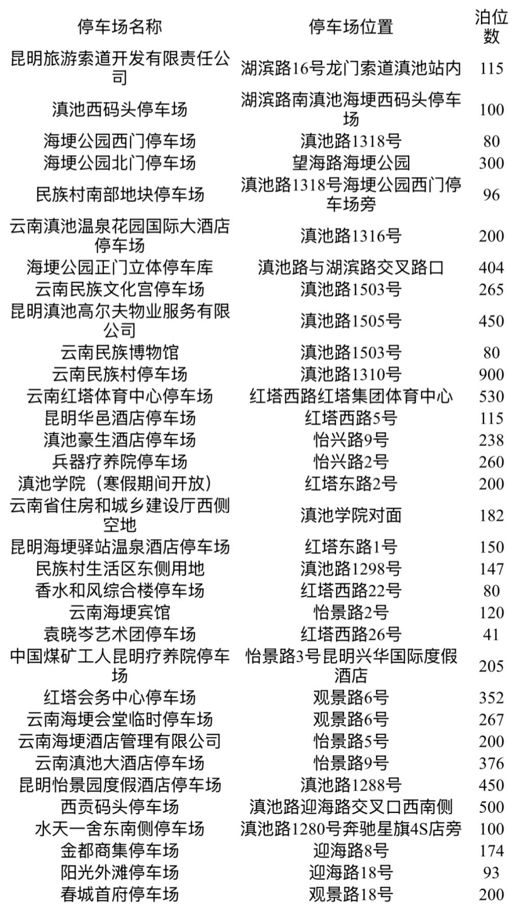 海埂大坝片区33个停车场 设置7970个停车泊位
