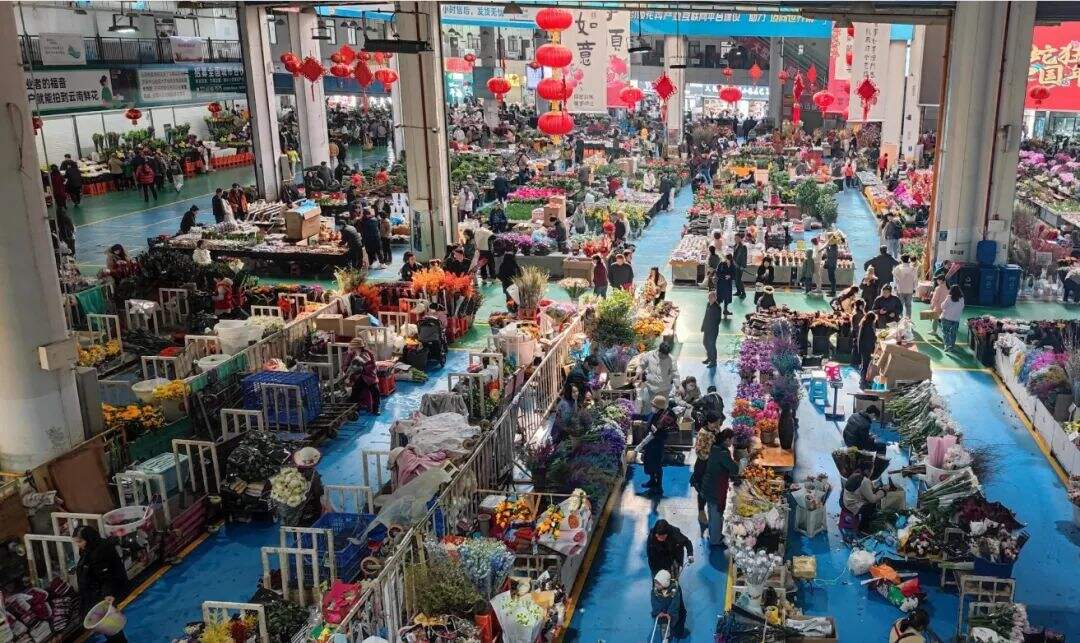 云南是世界三大最适宜种植花卉的产区之一,云南昆明的斗南小镇被誉为“亚洲花都”,拥有亚洲第一、世界第二的鲜切花交易市场,是我国花卉的“市场风向标”和“价格晴雨表”。岁末年初,这里迎来一年中最为热闹的销售旺季。在斗南的昆明国际花卉拍卖交易中心,近期每天成交400万枝左右鲜切花,拍卖的年宵花送往全国各大城市,“鲜花经济”为新春装点喜庆。