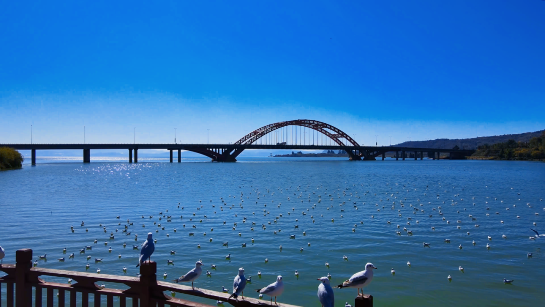 站在钢浮桥上,滇池近海风光尽收眼底。在水光潋滟的滇池上空,群鸥飞舞,这里也成为观海鸥赏美景的绝佳地点。