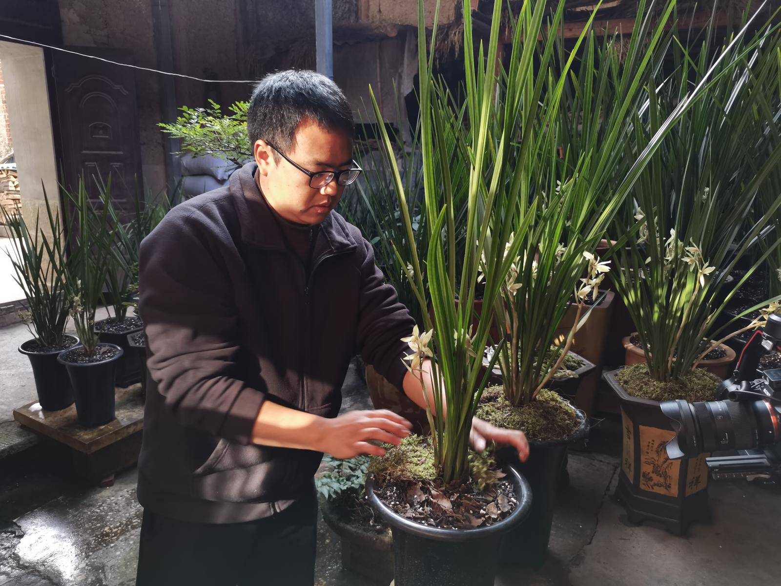 四街镇者湾村是有名的书画之乡,村民们崇尚书画,也喜种兰花。村民杨增云养兰10余年,积累了丰富的养兰知识和育兰技巧。走进杨增云的家,只见露天院子里,一盆盆通海剑兰长势良好,在兰叶间,一支支花箭傲然挺立,一朵朵剑兰花型美丽,芳香清幽,沁人心脾。
