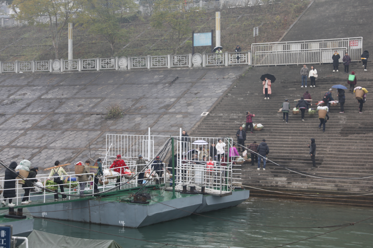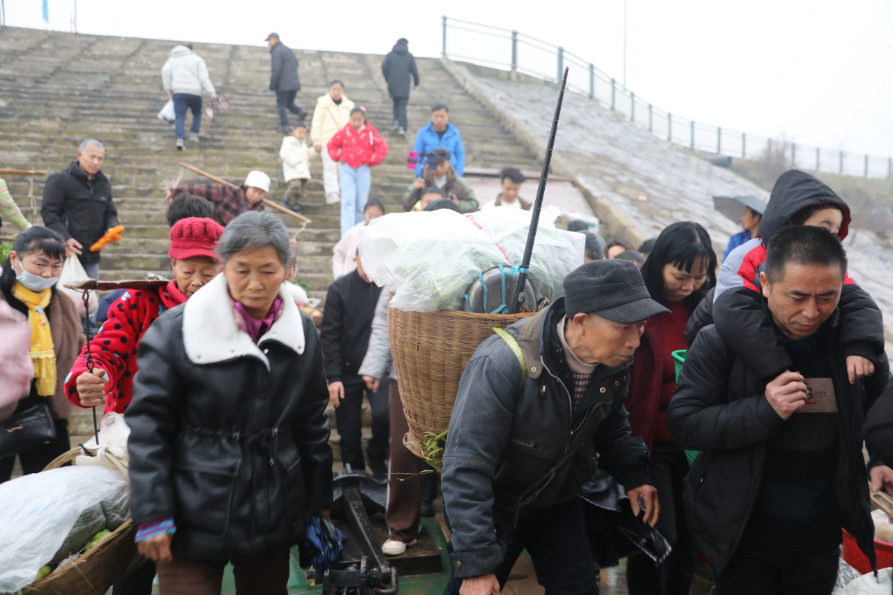 下午2时,菜农们背着空背篓陆续登船,等待返程。彭泽祥当天卖出了300多块钱,“再卖一天,几个娃儿的红包就能更鼓一些啦”;陈立举带来的几十斤蔬菜一售而空,“明天就不来了,开始忙年喽”;冉龙权卖完菜,背篓里装上了刚购买的对联、糖果……见到记者,菜农们纷纷讲述着一天的收获。