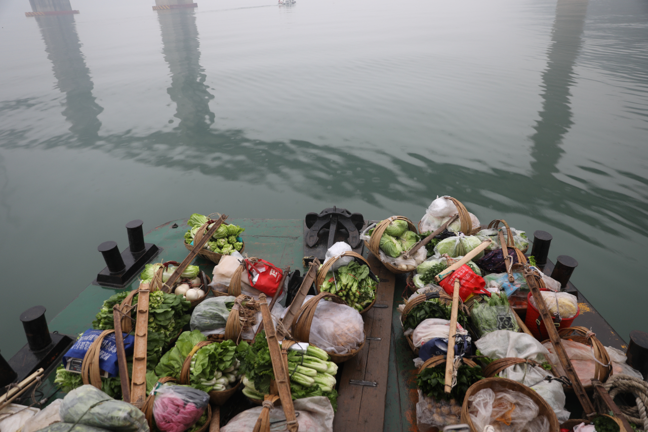 “早上5点多从家里出发,背着这40多斤的菜走了40分钟,坐船去忠县卖菜已经十多年喽。”跟随陈立举上船,他一边打理着背篓里的土豆、豌豆尖,一边和记者讲述这条船的故事。