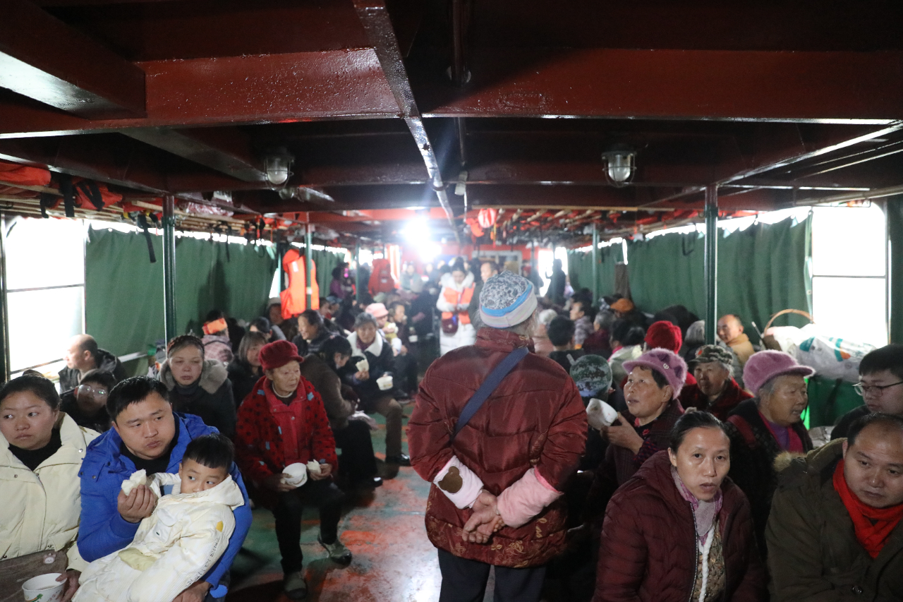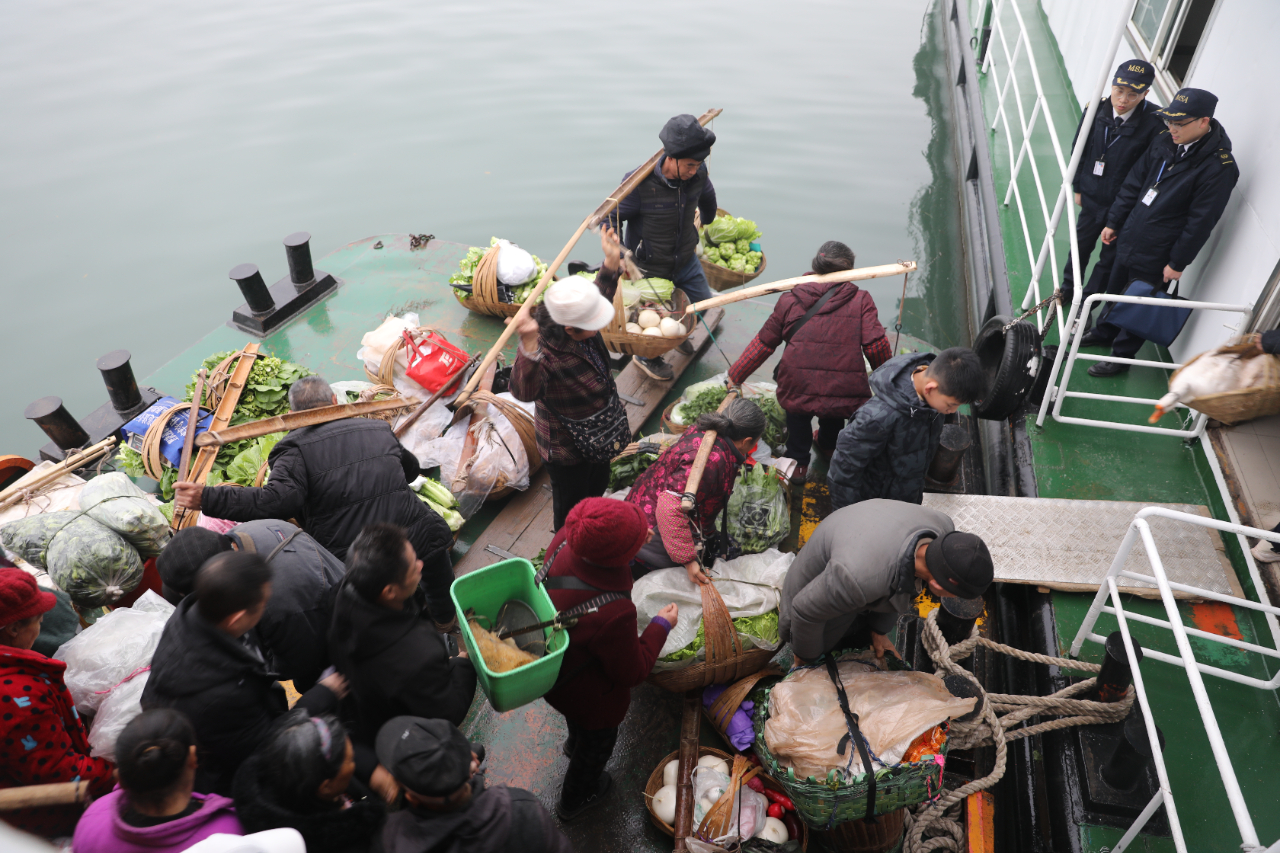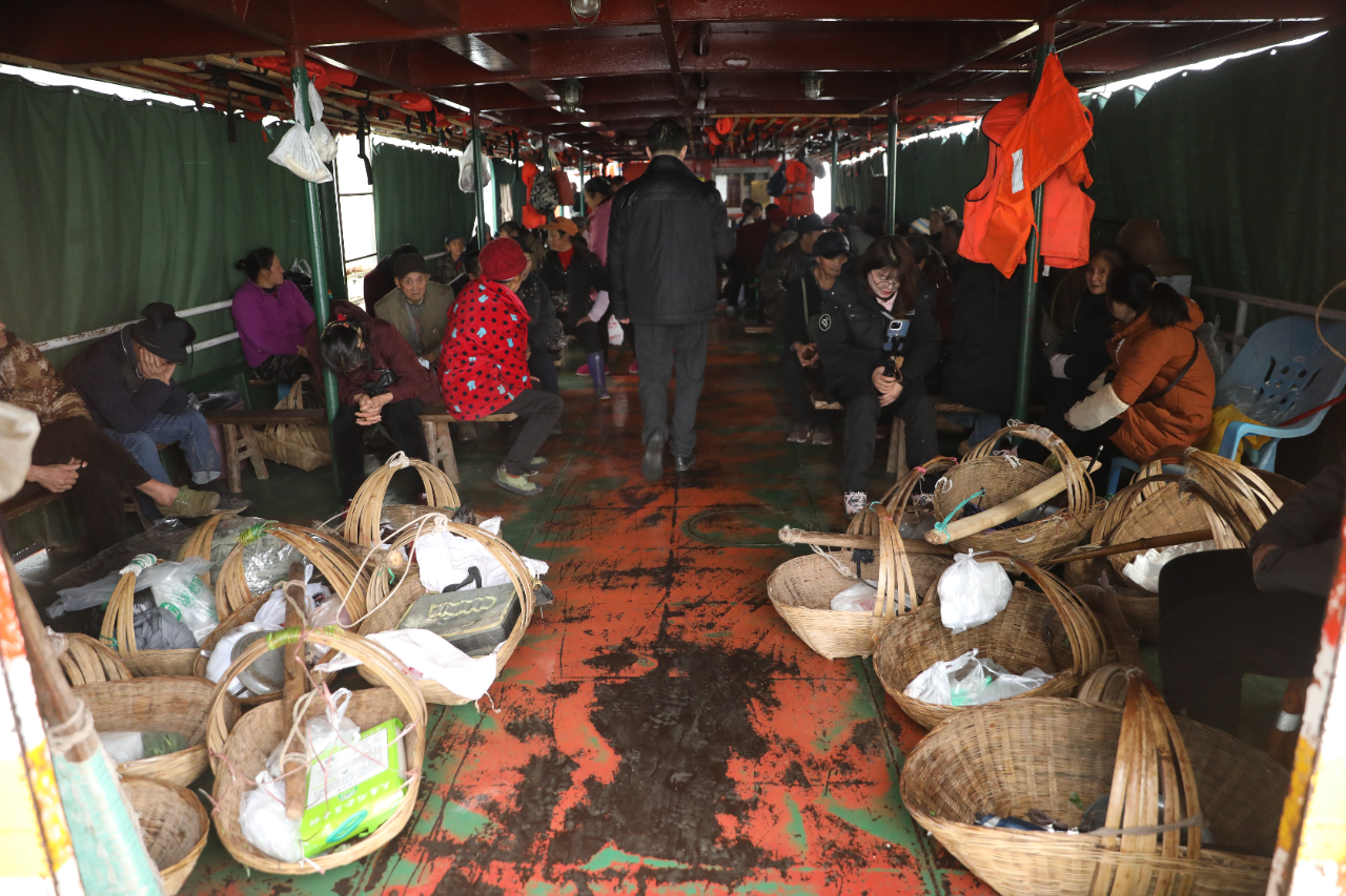 “对我们菜农而言,还是坐船方便,票价便宜,能挑扁担和背篓,活鸡活鸭也能上船。”在和陈立举交谈的过程中,又上来了十来名菜农,鸡与鹅在甲板上叫个不停。过年了,船舱里除了菜农,还有采买年货、走亲访友的村民。