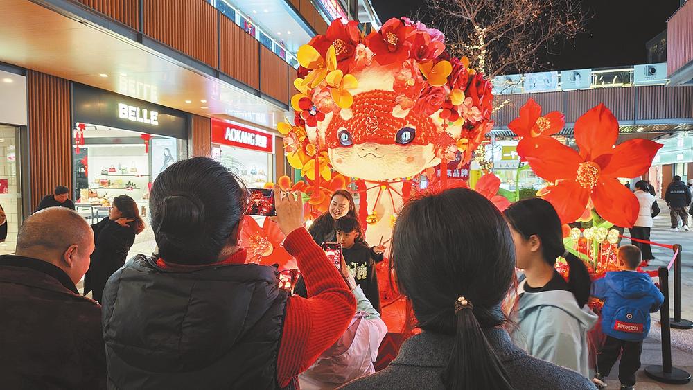 大年初三,玉溪市红塔区临岸三千城商圈内人流涌动,在“簪花小蛇”前,拍照打卡的市民游客络绎不绝;各手机专卖店内,店员正在为选购数码产品的顾客介绍以旧换新补贴政策。