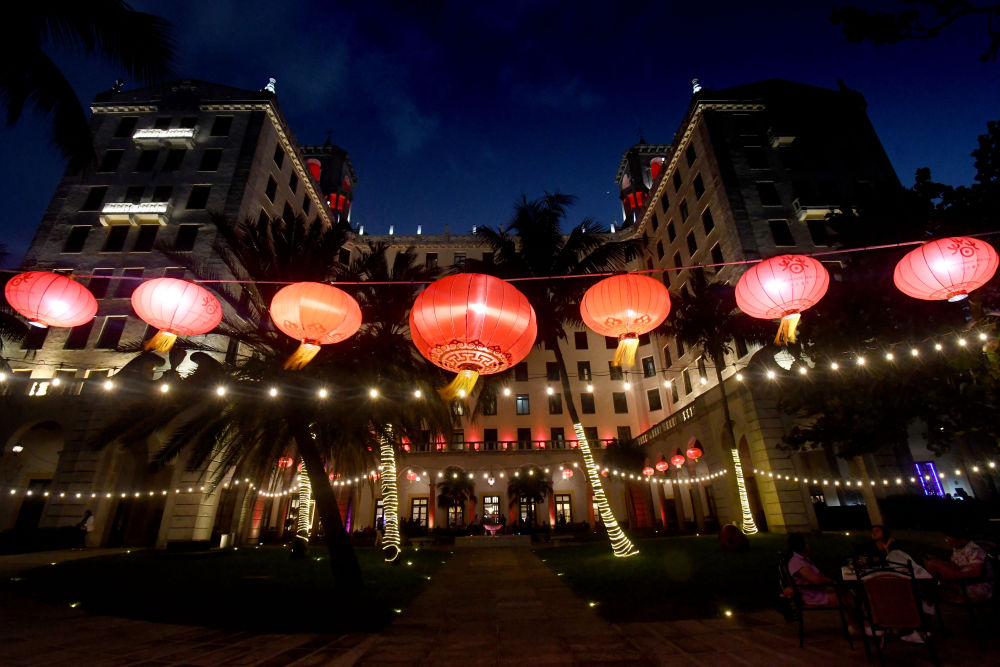 1月28日,古巴首都哈瓦那市中心的古巴国家饭店前悬挂中国灯笼。新华社发(华金·埃尔南德斯摄)