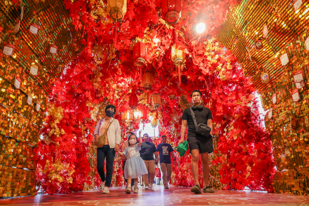 1月27日,在菲律宾马尼拉,人们穿过挂满春节装饰的走廊。新华社发(乌马利摄)
