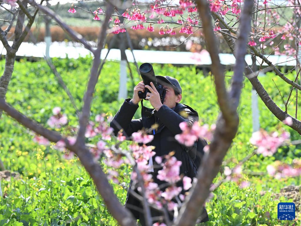 2月9日,参观者在霞浦县玉潭樱花谷生态科技园拍照。新华社记者 姜克红 摄