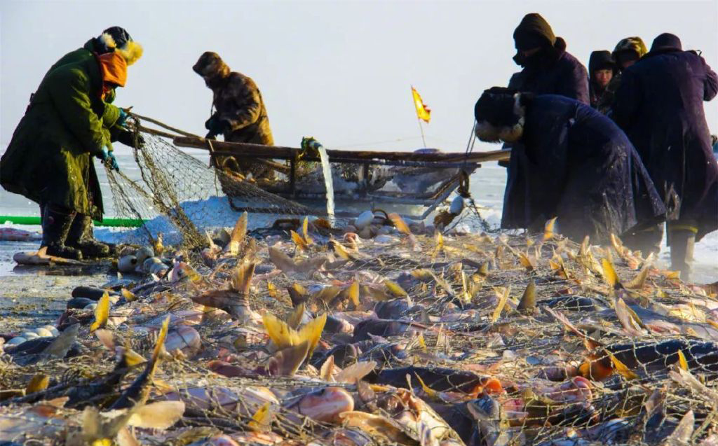 吉林查干湖冬捕可以追溯到上千年前的辽金时期,生存在这里的人们将他们的渔猎技艺和文化传统世代相传,形成了灿烂的查干湖渔猎文化。