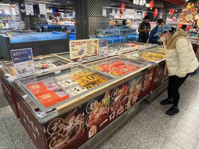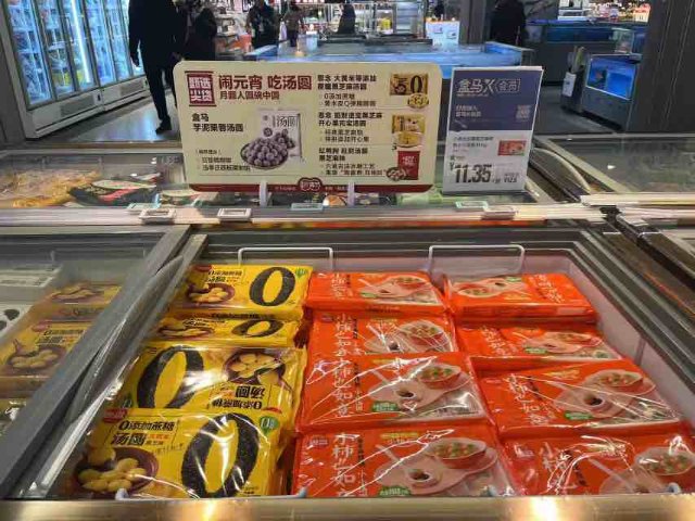“月圆人圆碗中圆”。2月11日,在盒马鲜生和谐世纪店,开屏新闻记者一进门就看到了装着汤圆的冰柜。