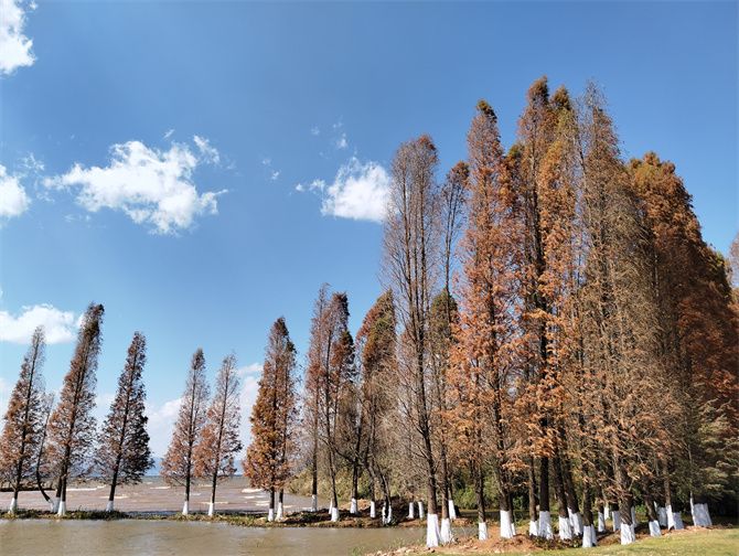 滇池绿道林之桥段,大片的中山杉成为迷人风景。记者江枫/摄