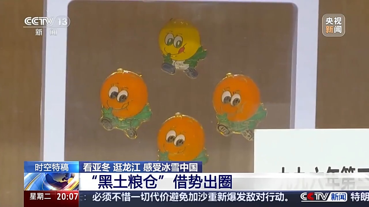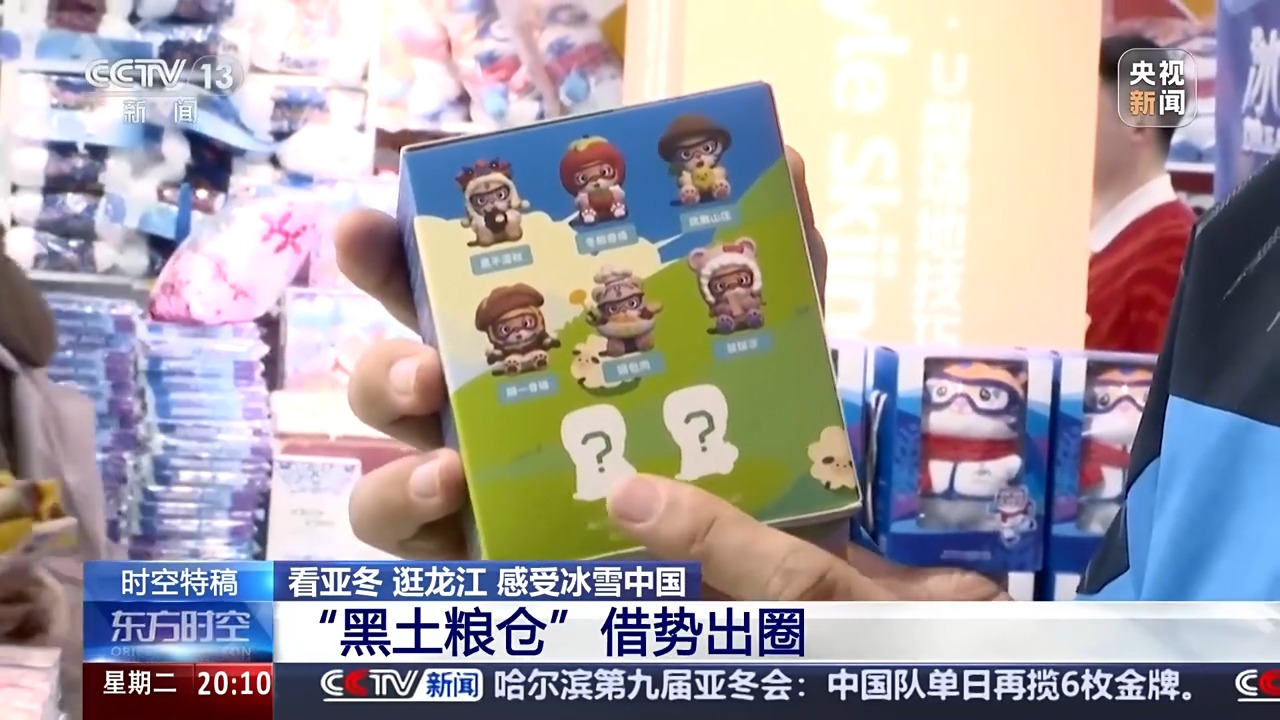 总台央视记者 郑怡哲:吃饱了,喝足了,我们再来逛逛今年的亚冬会纪念品商店。我们注意到,有一个东北美食主题系列盲盒,有黑不溜秋的冻梨、冻柿子、小鸡炖蘑菇,还有红肠、锅包肉和雪糕。但是这里,我们可以看到还有两个隐藏款。