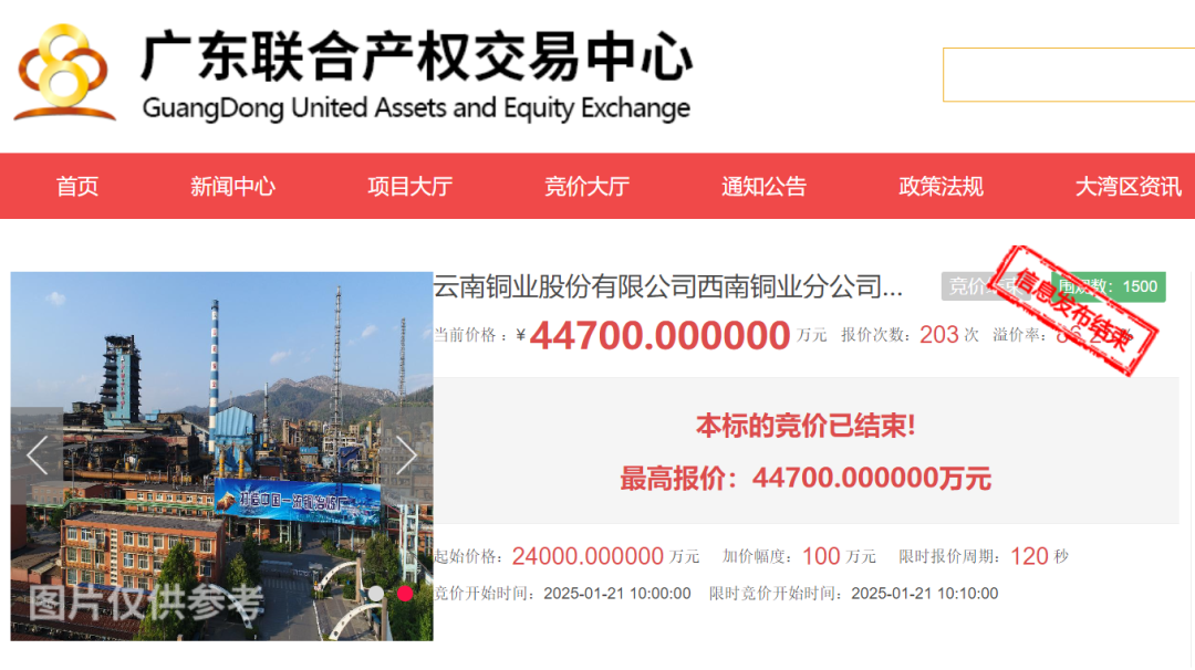 云南铜业股份有限公司和云南铜业(集团)有限公司上月在广东联合产权交易中心以公开挂牌的方式,转让下属西南铜业分公司王家桥厂区部分固定资产及存货。经逾200次激烈竞价,最终由湖南涟钢建设有限公司以4.47亿元的价格竞得,较挂牌起始价2.40亿元溢价86.25%。值得关注的是,竞拍公告披露,将于今年6月30日前拆除云铜王家桥老厂区。