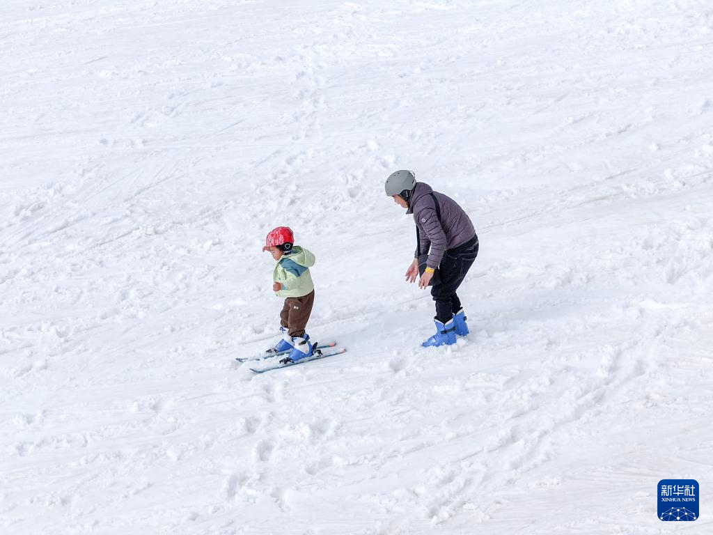 据介绍,轿子雪山室外滑雪场目前已建成的可用滑雪道面积达数万平方米,高峰期日均接待游客可达2000人次以上。新华社发(彭奕凯摄)