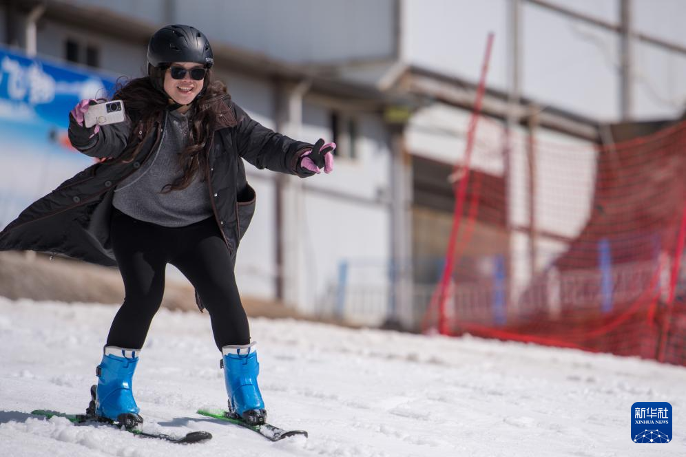 2月10日,游客在昆明市轿子雪山室外滑雪场滑雪。