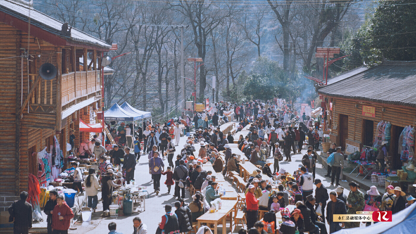 同时,山街集市上原汁原味的羊汤锅、苦荞粑粑等传统美食,持续冲击着游客们的味蕾。在非遗彝绣田野市集,展示着彝绣、羊皮褂等彝族服饰(刺绣),还有葫芦笙、响篾等非遗技艺。