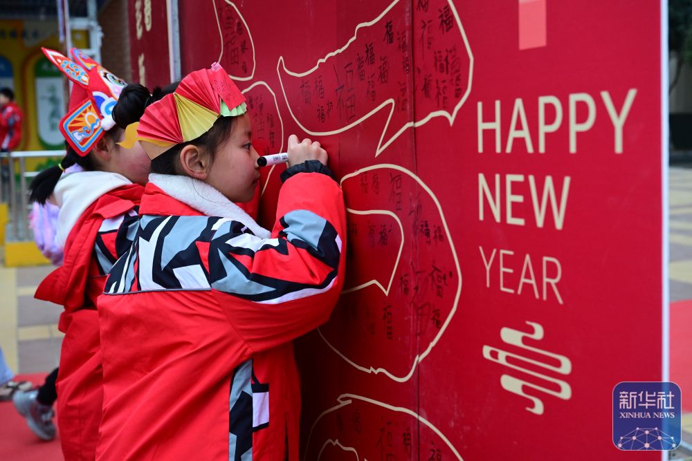 2月14日,在合肥市园上园小学喻岗分校,学生参加画蛇添“福”活动。新华社记者 周牧 摄