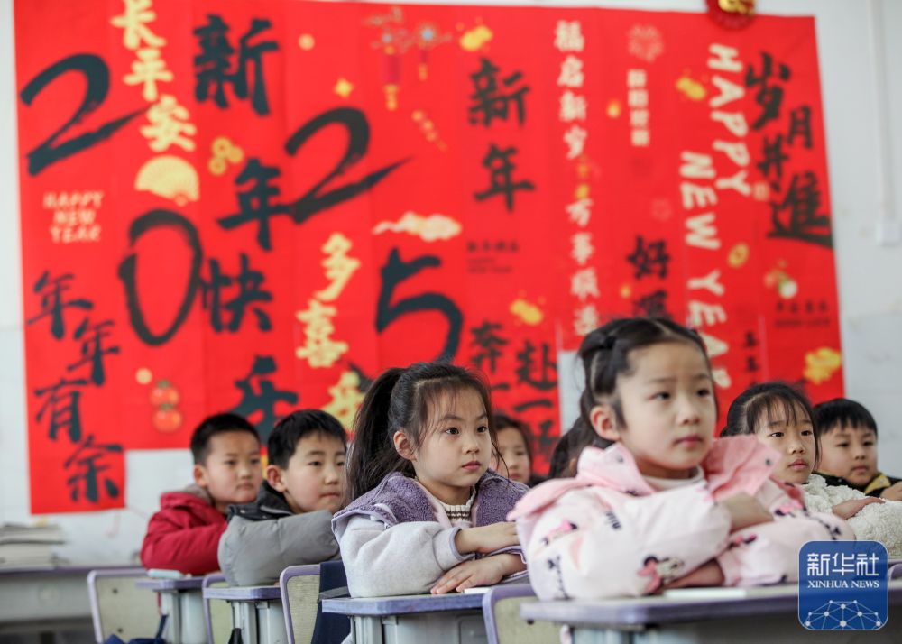 2月14日,在河南省焦作市博爱县清化镇街道七街小学,学生在听课。新华社发(程全摄)