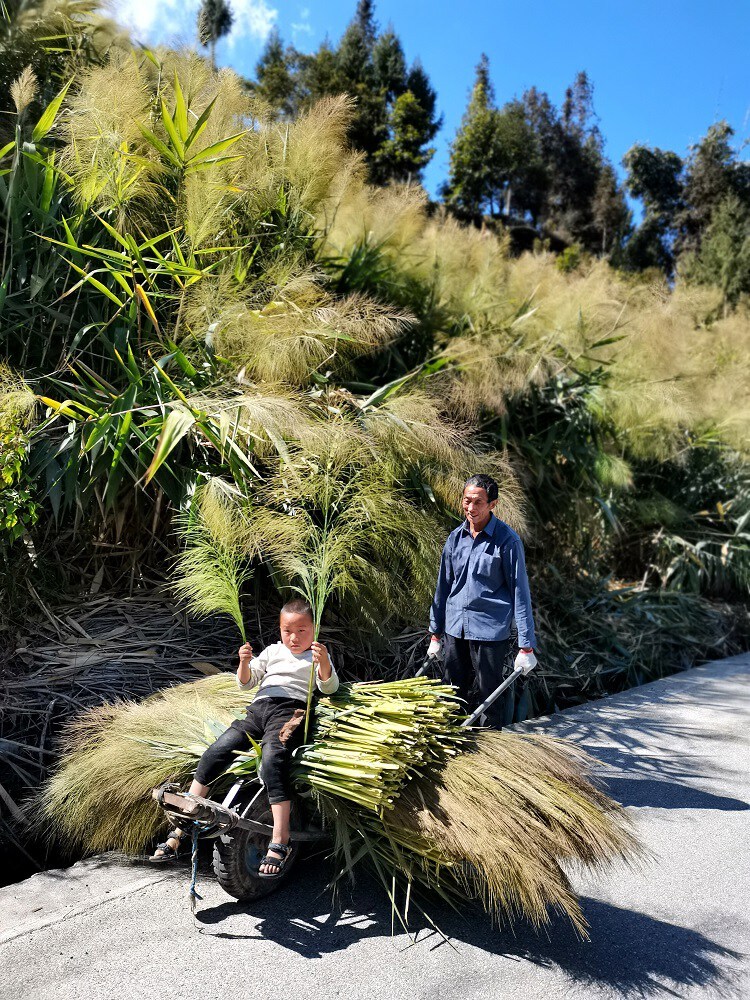 目前,全村368户村民共种植粽叶600余亩,共有460余名留守妇女、留守老人编织笤帚。依托农民专业合作社,每年销售笤帚10余万把,实现村民增收200余万元。