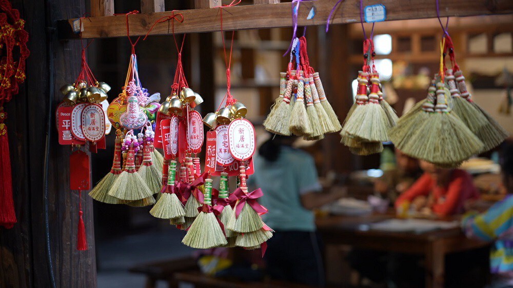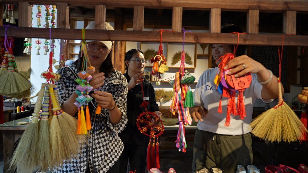 为壮大笤帚产业,龙洒村以党组织领办农民合作社为阵地,将笤帚进行精细化、特色化加工,积极探寻衍生产业。董丽娟带头研发制作挂饰、摆件、礼品等精美饰品,不断增加产品种类,依托“撒谷洞”“龙洒笤帚”2个注册商标,形成龙洒特色笤帚品牌。