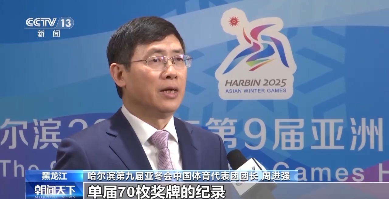 哈尔滨第九届亚冬会中国体育代表团团长 周进强:金牌数追平2011年亚冬会哈萨克斯坦创造的单届32枚的纪录,奖牌数打破哈萨克斯坦单届70枚奖牌的纪录,完成了取得参赛历史最好成绩的目标。体现了自北京冬奥会申办成功以来,我国冰雪运动全面发展态势,冰上、雪上项目发展日渐均衡、齐头并进,原有的“冰强雪弱”局面正在改变为冰上项目、雪上项目均衡发展。