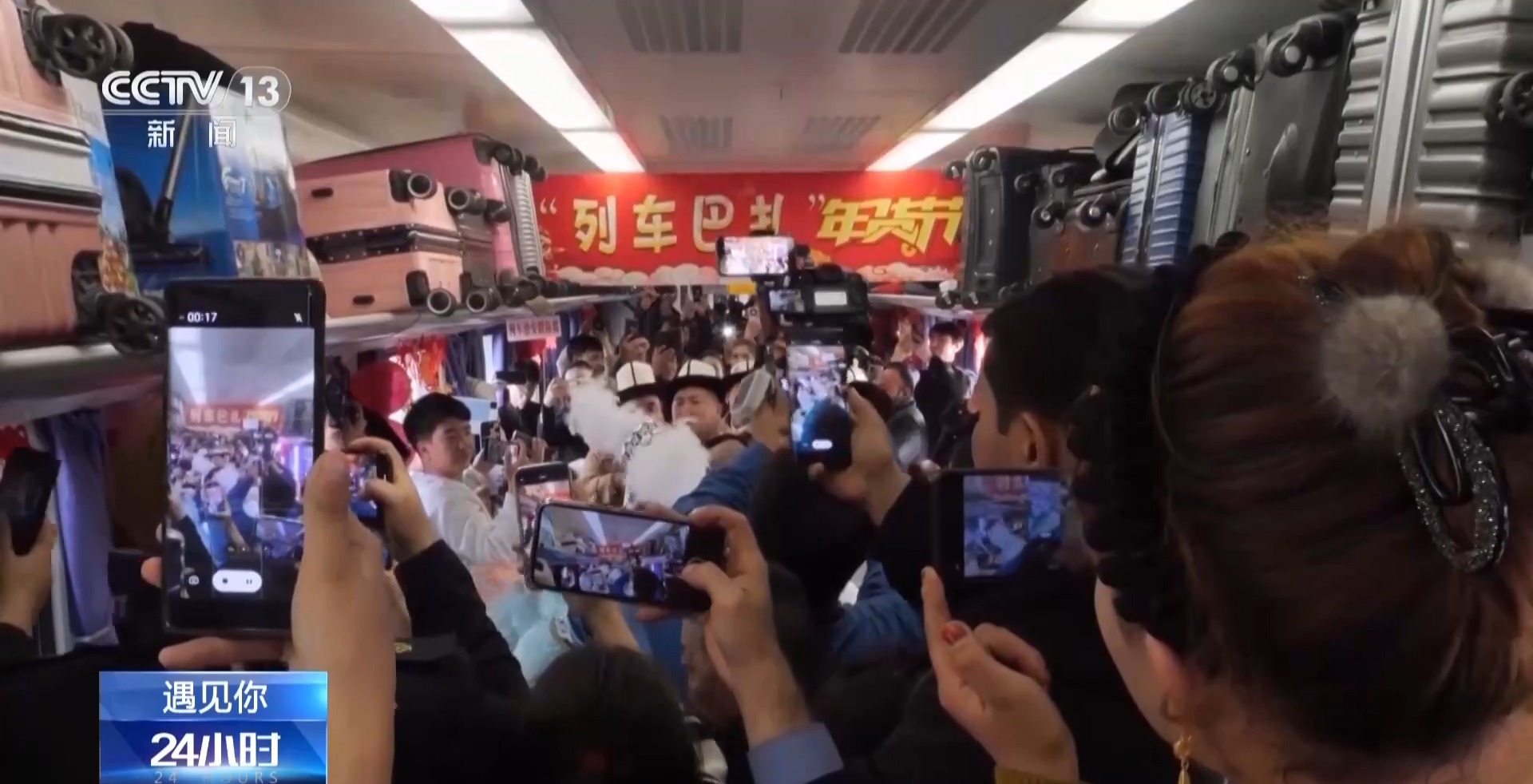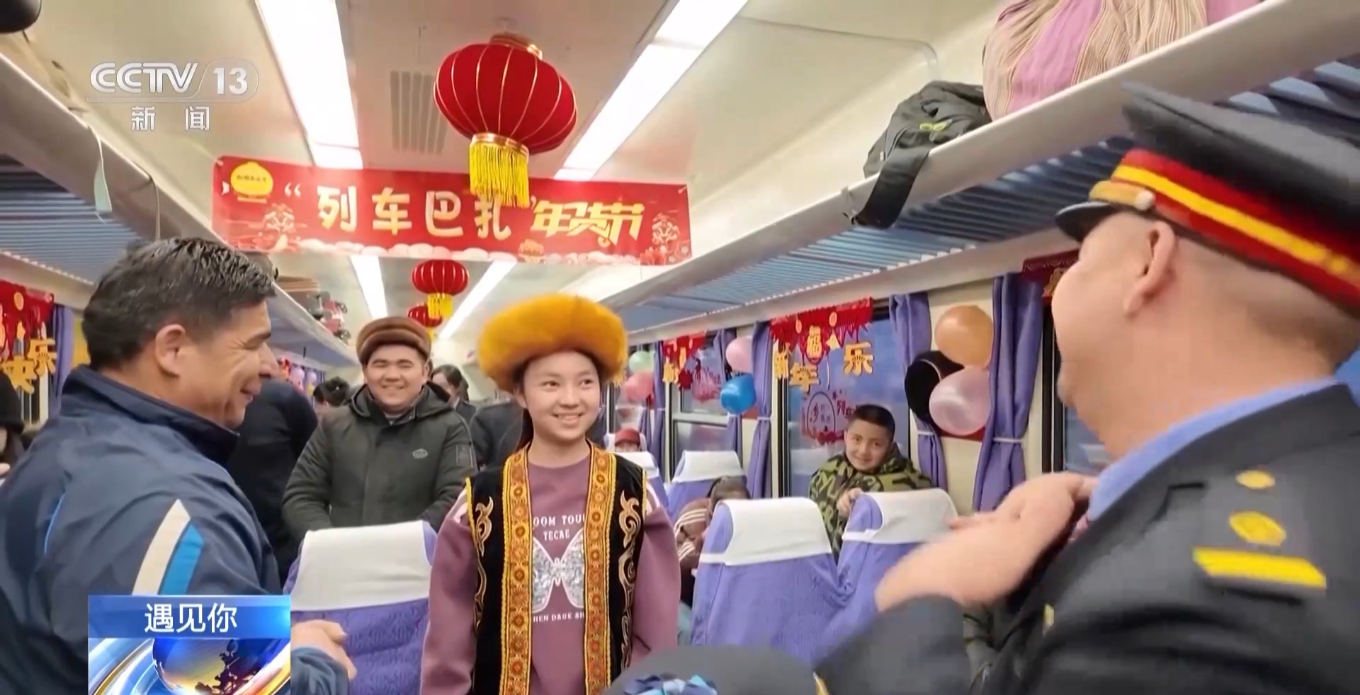 国铁乌鲁木齐局库尔勒客运段列车长 坡拉提汗:他们卖完以后,我特喜欢跟他们一块儿跳起来。有时候,人特开心的时候,表达不出来,我最大的表达方式,还是新疆人的方式,跟他们一起跳起来。