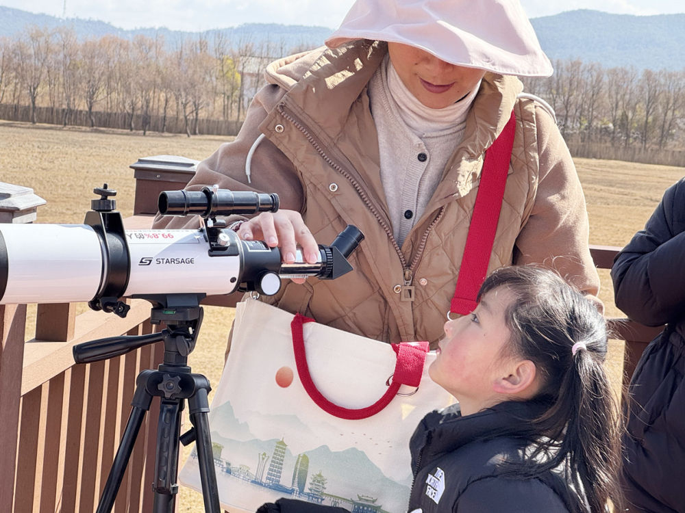 “看!那群是不是灰雁?共有12只。”小朋友们用望远镜一边探寻候鸟踪迹,一边兴奋地说着。在工作人员带领下,参加活动的家庭分成6个小组深入湿地腹地。孩子们化身“小小科学家”,用望远镜追踪鸟群动态,在记录本上认真勾画鸟类的特征标记。一位父亲轻声提醒女儿:“轻点按快门,别惊扰它们。”此刻,观鸟不仅是知识的实践,更成为传递生态伦理的温情课堂。