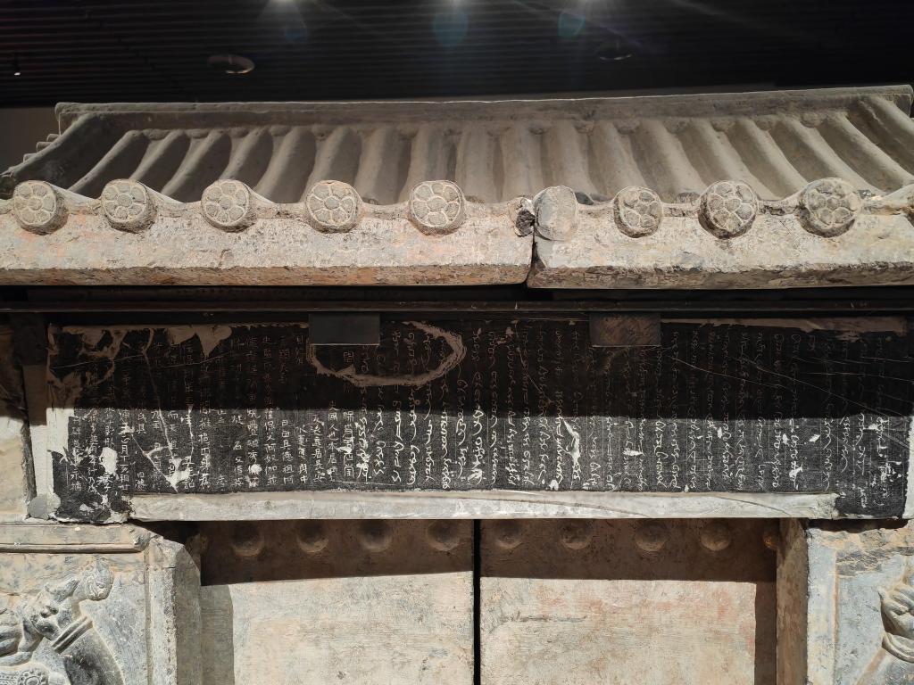 这是史君墓石椁上的粟特语和汉语铭文。新华社记者 杨一苗 摄