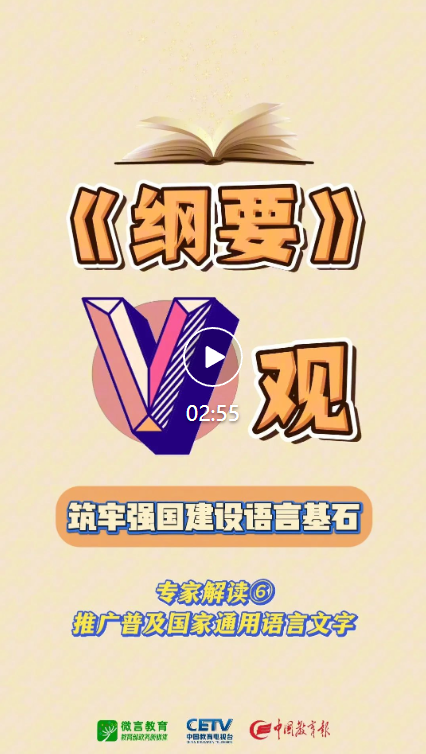 《教育强国建设规划纲要(2024—2035年)》(以下简称《纲要》)日前正式发布,明确了38条重点任务。教育部新媒体矩阵推出“解码《纲要》”栏目逐一解读。今天,解码第六条“推广普及国家通用语言文字”,一起来看3个视频——