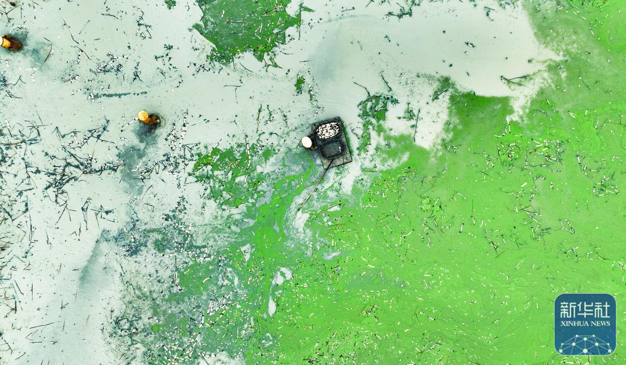 2月17日,湖南省常宁市板桥镇农民在藕田采挖莲藕(无人机照片)。 新华社发(郭宜庚 摄)