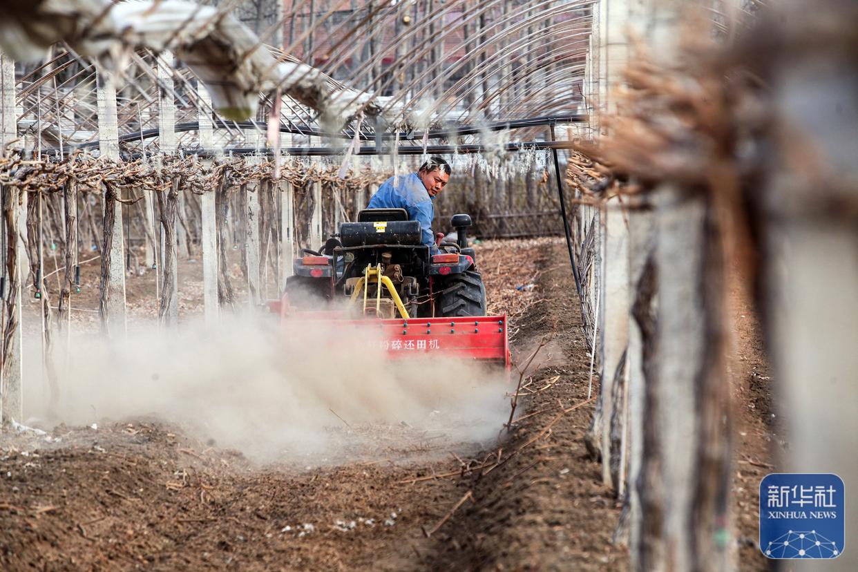 2月17日,村民在河南省焦作市博爱县磨头镇狮口村葡萄园里劳作。 新华社发(程全 摄)