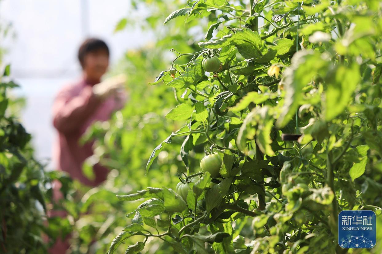 2月17日,河北省石家庄晋州市周家庄乡农民在大棚内管护西红柿。 新华社发(梁子栋 摄)
