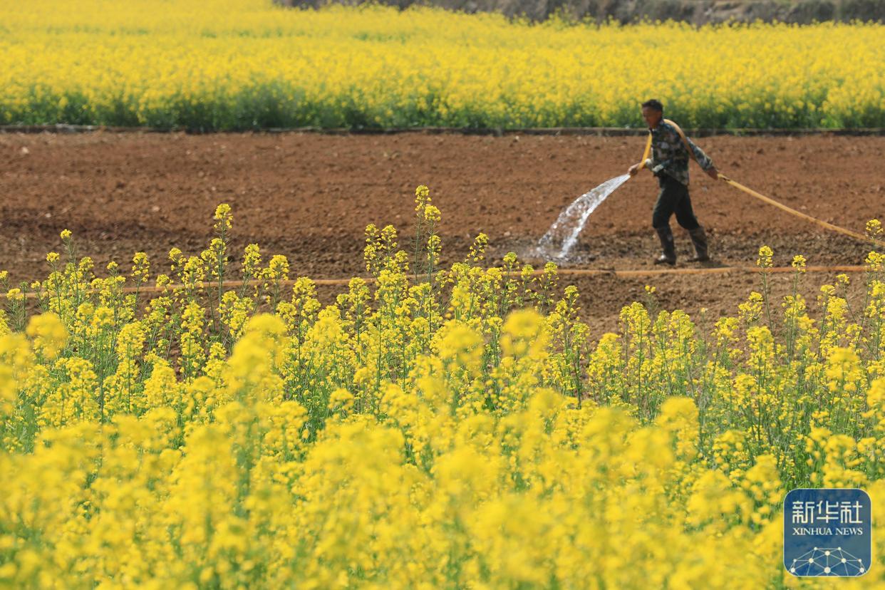 2月17日,在云南省腾冲市中和镇樊家营村,村民正在给新种植的荞麦浇水。新华社发(龚祖金 摄)