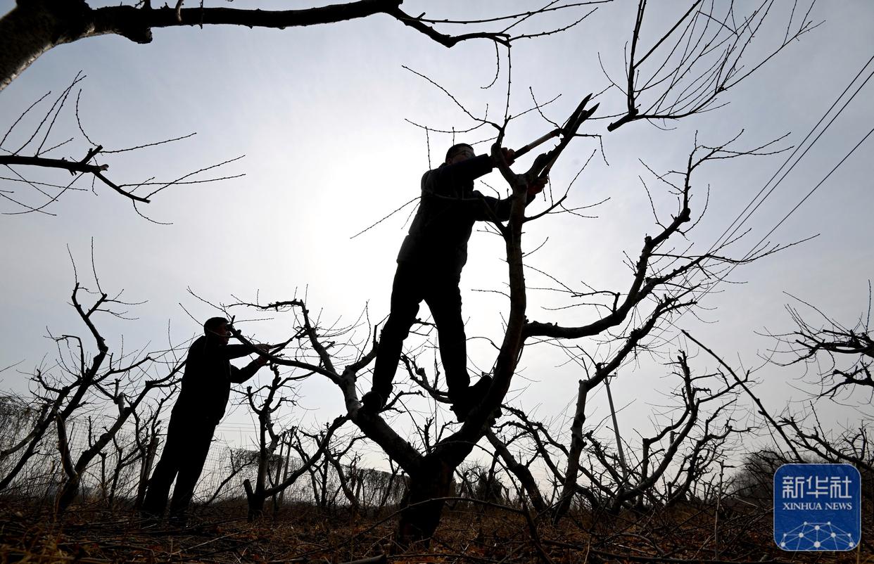 2月17日,河北省邯郸市峰峰矿区彭城镇炉上村村民在修剪桃树。新华社发(郝群英摄)