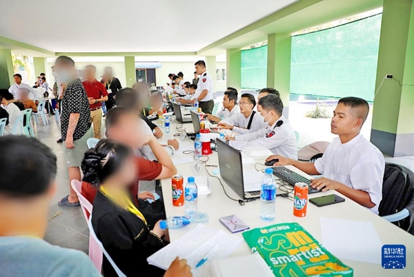 2月17日,缅甸当局在克伦邦妙瓦底处理非法入境外籍人员相关事宜。新华社发(缅甸国家管理委员会新闻信息小组供图)
