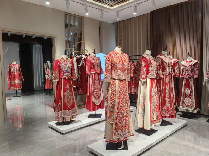丁集镇生产展示的中式秀禾服。新华社记者 汪海月 摄