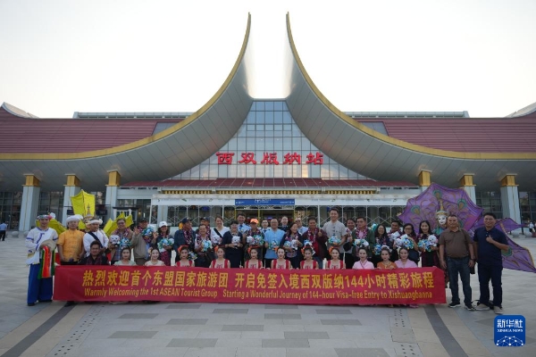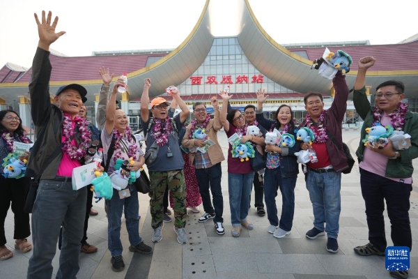 这是东盟国家旅游团入境云南省西双版纳傣族自治州免签政策实施后,抵达的首个旅游团。在旅行社的精心安排下,游客们既可领略西双版纳的自然风光,还能体验当地美食和民族风情。
