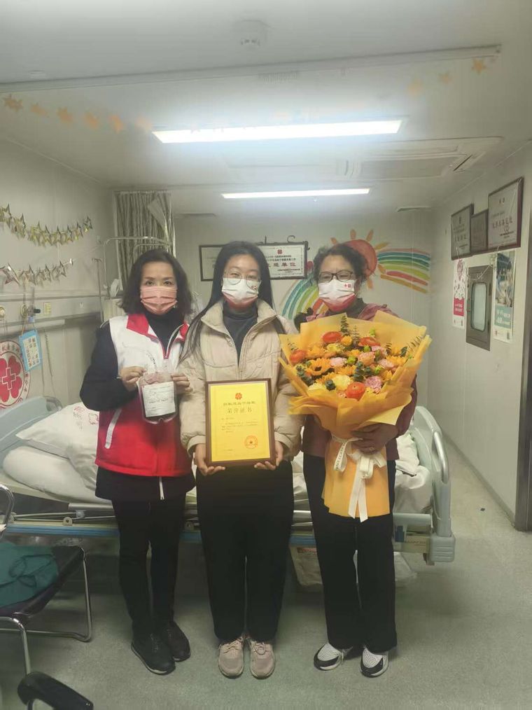 王医生的善举也得到了单位的全力支持。医院领导特意为她调整了工作安排,捐献当天,医院领导也特意来看望她,并为她送去了鲜花,作为一名医务工作者,王医生用实际行动践行了医者仁心的精神。王医生的善举,不仅点燃了患者的生命之光,也为社会传递了温暖与正能量。她用行动诠释了医者的大爱与担当,也为孩子树立了无私奉献的榜样。相信在她的感召下,会有更多人加入造血干细胞捐献志愿者的行列,为更多患者带去生命的希望。